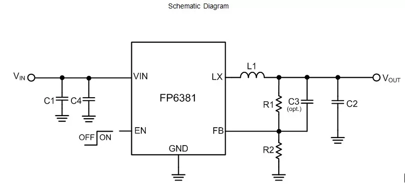 The FP6381 is a high efficiency, high frequency synchronous DC-DC step-down converter. The 100% duty cycle feature provides low dropout operation, extending battery life in portable systems.