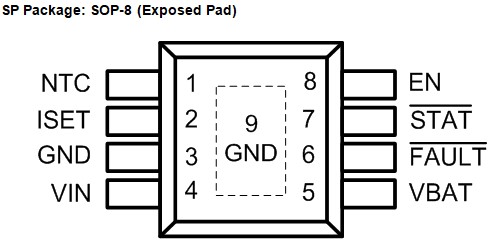 The FP6908 is designed with charge current thermal fold-back function to guarantee safe operation when the printed circuit board is space limited for thermal dissipation. A negative temperature coefficient (NTC) thermistor is connected between the NTC and GND to monitor the battery or ambient temperature.