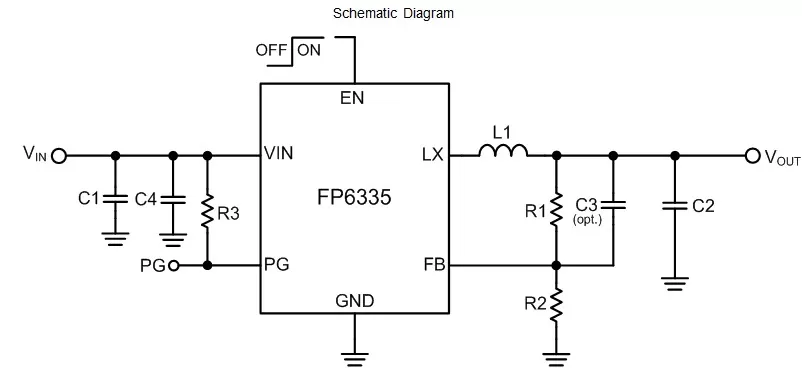 The FP6335 is a high efficiency, high frequency synchronous DC-DC step-down pulse width modulated (PWM) converter. The 100% duty cycle feature provides low dropout operation, extending battery life in portable systems.