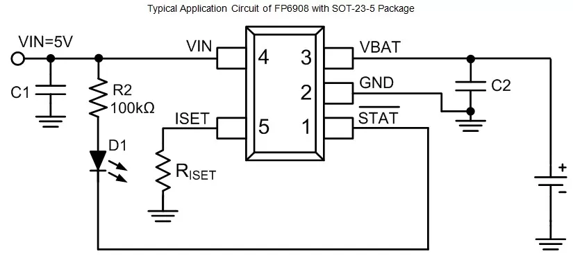 The FP6908 is a single-cell Li-ion/Li-polymer battery charger IC which can be operated with an input voltage as low as 3.9V. The FP6908 can work with various types of AC adapters.