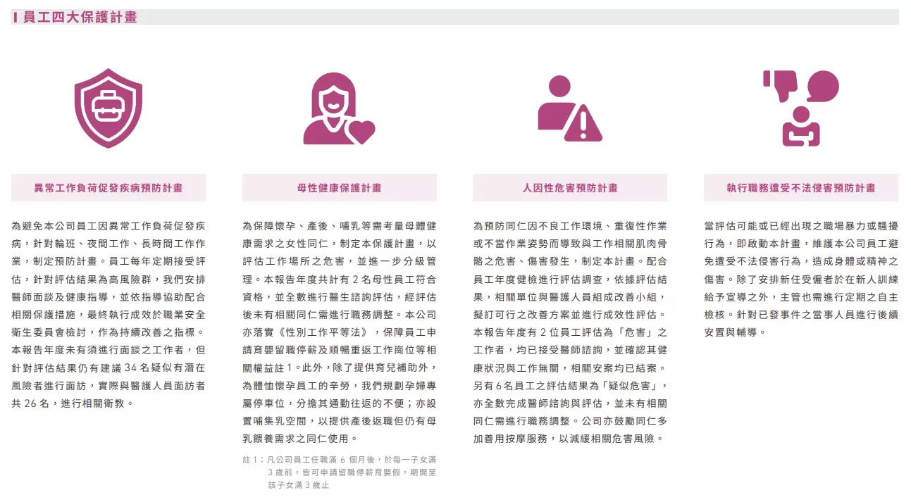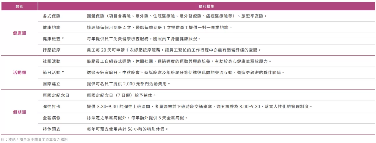 確保員工受到尊重並享有尊嚴,重視人才管理與員工關懷,並提供安全及健康的工作環境與優渥的福利,吸引多元優秀人才攜手成長。