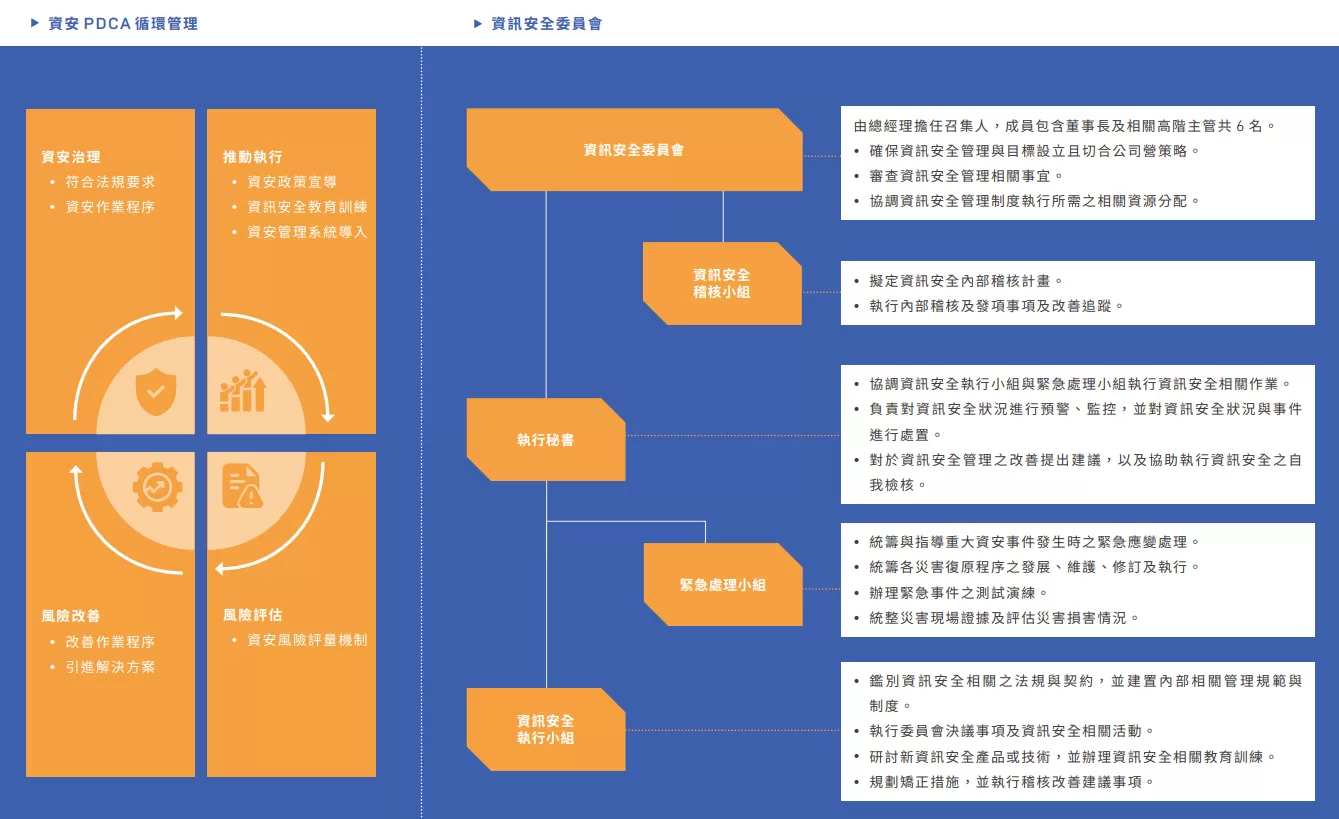 為確保天鈺科技各項資訊管理能有效運作執行並面對潛在風險,我們秉持 PDCA 循環式管理原則,建立全面性的資訊安全風險評估與管理制度(ISO 27001)、資訊安全監控中心(SOC),並成立資訊安全委員會,定期向董事會報告運作情形與規劃行動。於2024年,本公司導入趨勢科技所提供的MDR(託管式偵測與回應)服務,藉由外部專業團隊進行24小時資安監控與即時威脅回應,有效強化整體資安防護能力,提升事件應變效率與系統韌性。且未接獲有任何侵犯客戶客戶隱私、資訊失竊、洩漏、遺失等相關投訴,總計辦理1 場次資安演練(釣魚演練),針對資安意識不足的同仁進行再培訓及測驗,進行後測之同仁均已全數通過合格標準,以確保資安政策有效落實(瞭解更多政策內容)。