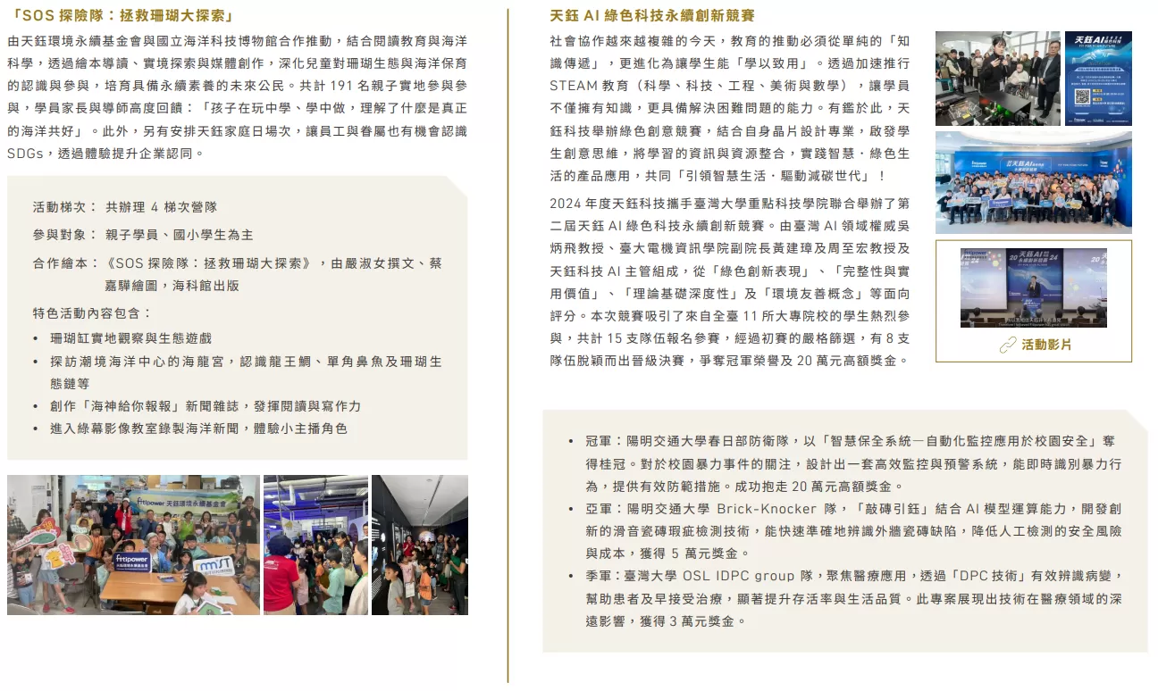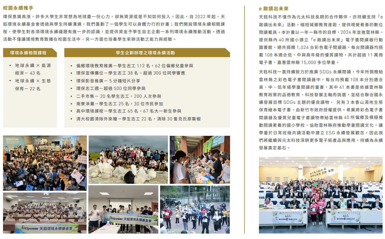 新竹是台灣的科技重鎮,也是天鈺科技營運總部所在,所以天鈺基金會以新竹為始擴及台灣各地,以「環境推廣」、「人才培育」、「弱勢關懷」、「員工參與」、「外部合作」、「技術創新」及「產品優化」七大行動方針,推動環保公益事業,致力「還原地球乾淨的樣貌」。